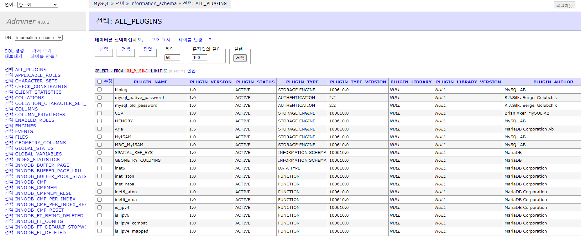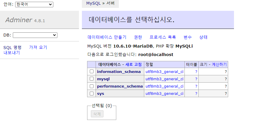 adminer - PHP ๊ธฐ๋ฐ DB ๊ด๋ฆฌ ํ๋ก๊ทธ๋จ(DB๊ด๋ฆฌํด)